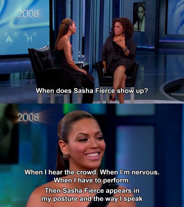Choose an event(s) when this alter ego will come out. For me, it’s any time I publish anything on the internet. For Beyonce, it’s when she put’s on her high heels.