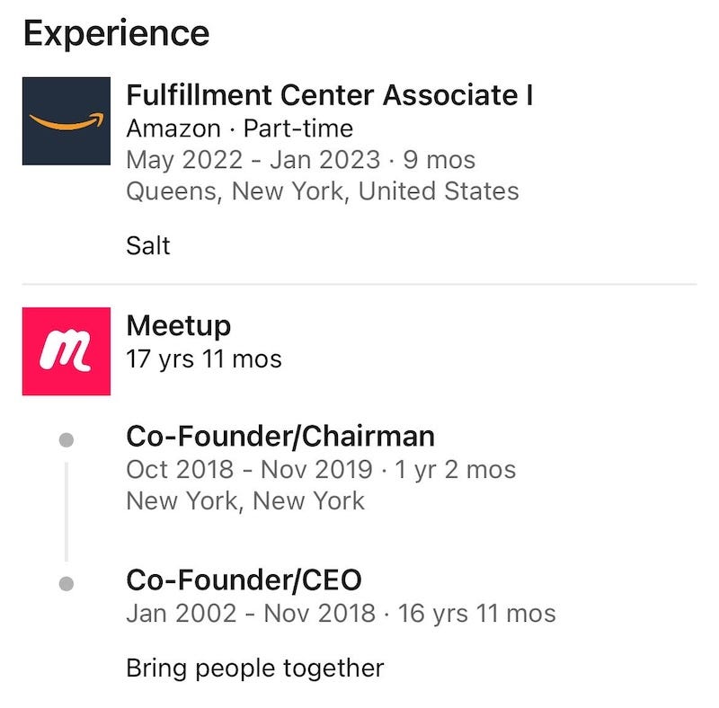 They can be the co-founder of Netflix, then work in an Amazon fulfillment center tomorrow