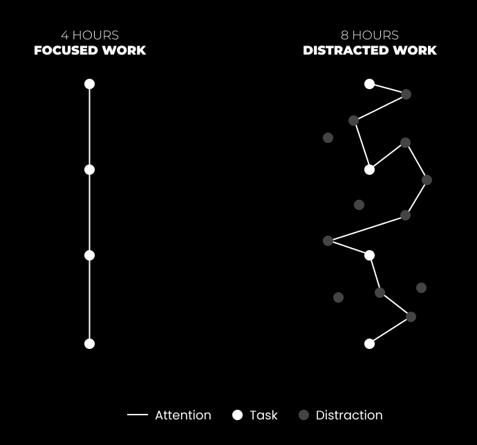 It’s not that the 4-hour workday people do less work. It’s that they work in a new way without distractions. So their output is higher and they can hit their work goals faster, leaving them extra time for rest.