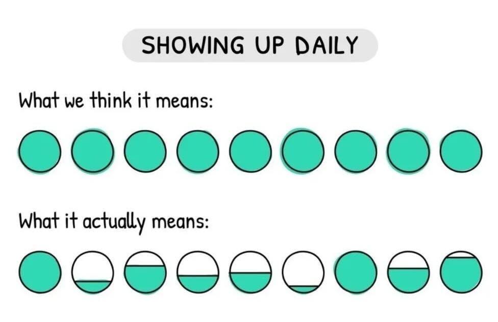Showing up daily is important, but if you overthink and suffer from perfectionism (which most do), it’s not gonna help you.